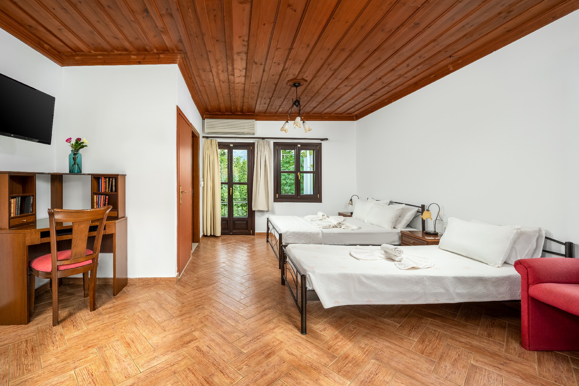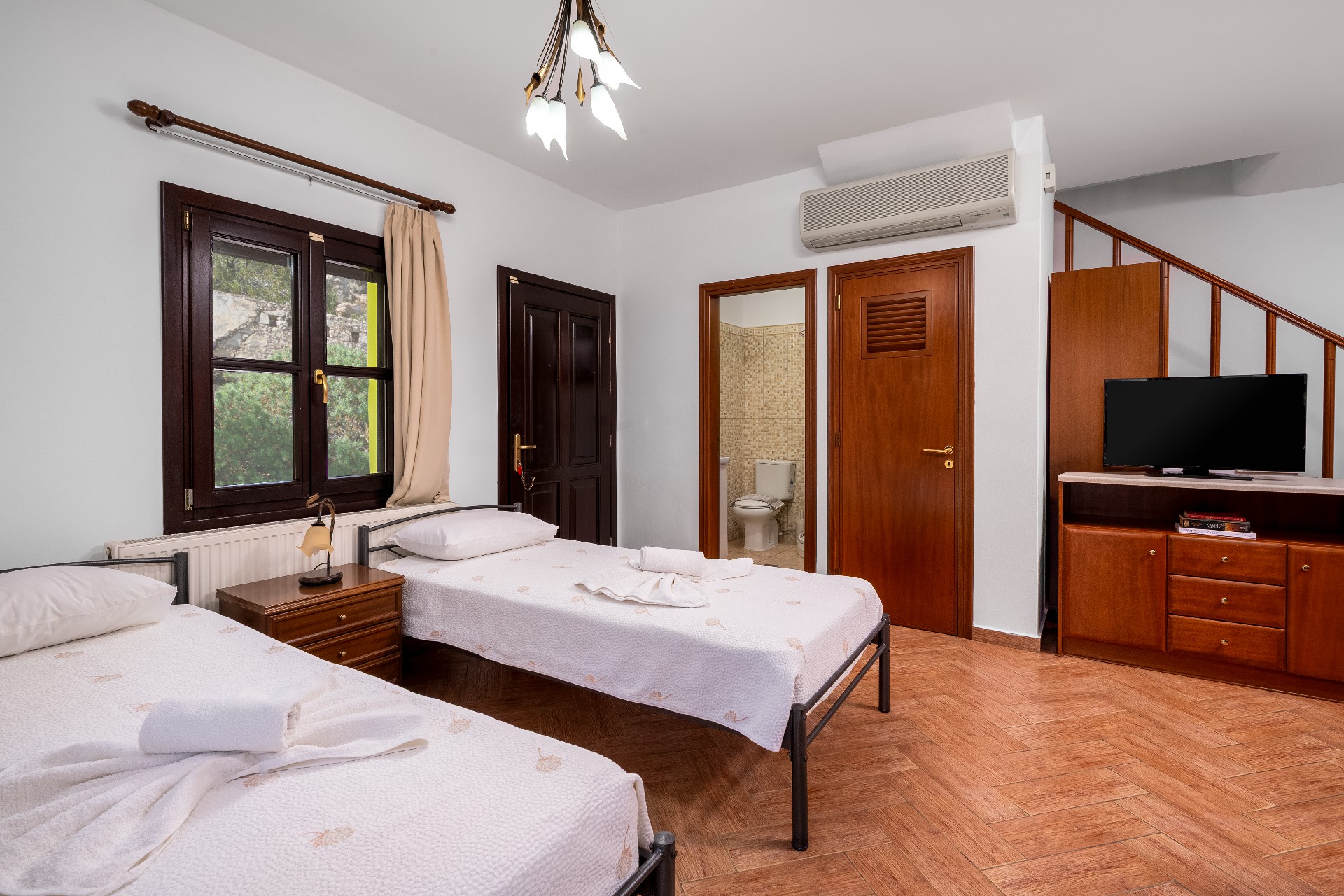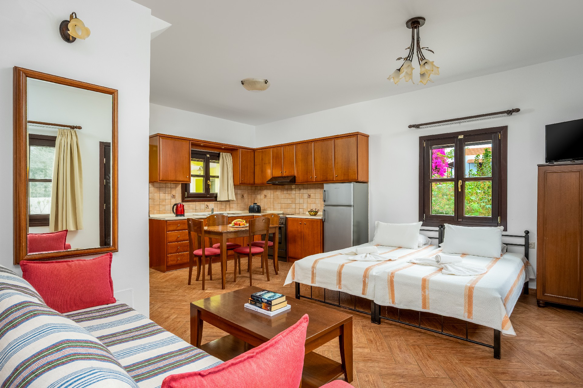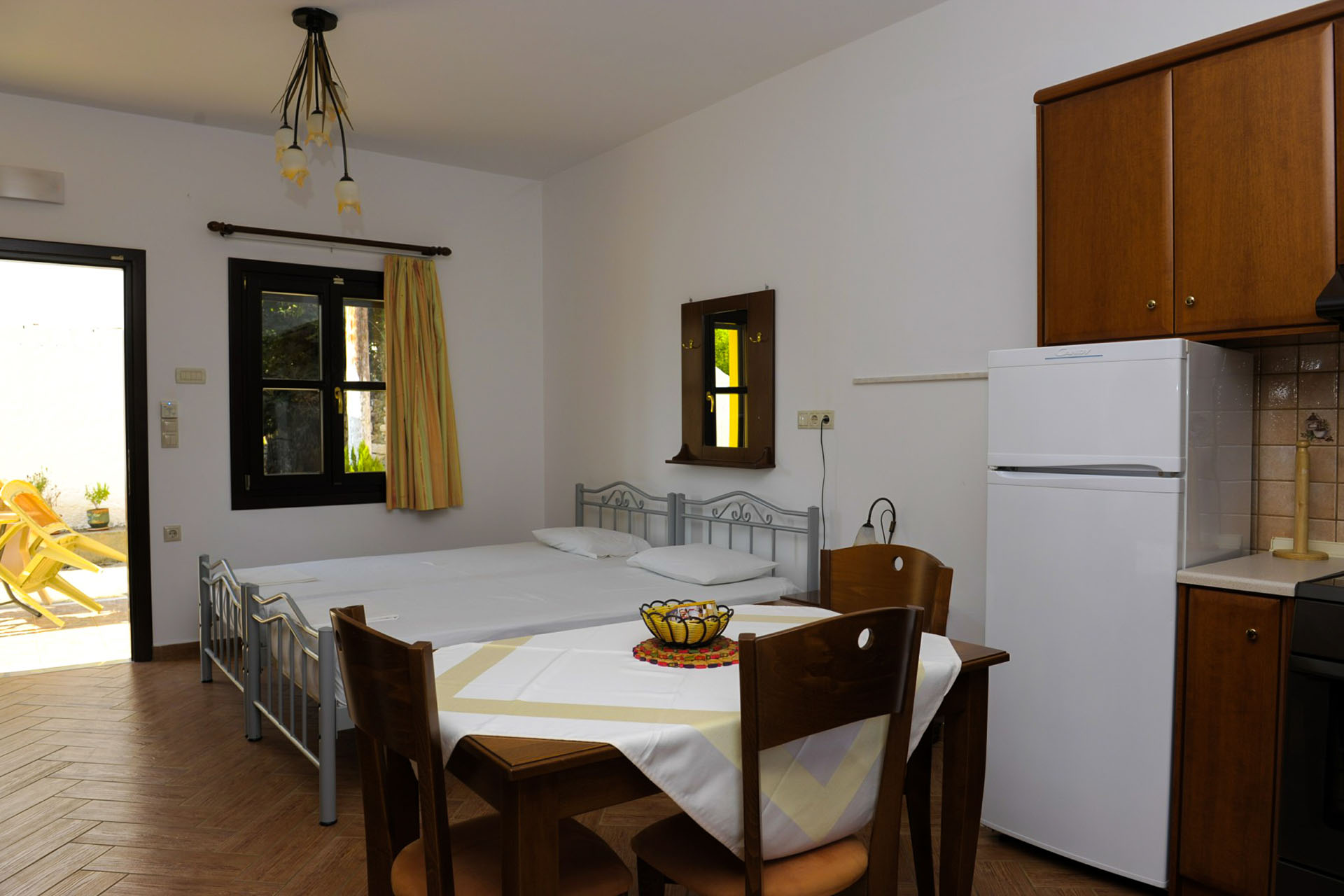 Τα ενοικιαζόμενα δωμάτιά μας αποτελούνται από μεζονέτες (διώροφα σπίτια) και δωμάτια (στούντιο), με παραδοσιακή αρχιτεκτονική, τα οποία είναι πλήρως εξοπλισμένα (κουζίνα, μπάνιο, καθιστικό, τραπεζαρία, τηλεοράσεις, air condition και Internet).